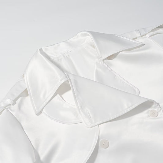Long sleeved white double breasted loose jacket for women