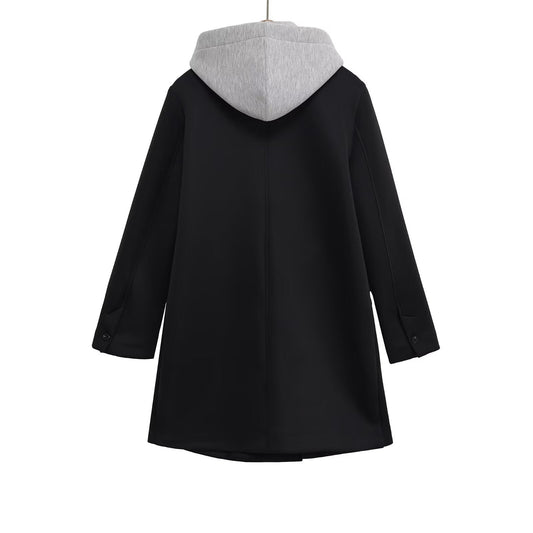 Loose double breasted detachable hooded coat for women